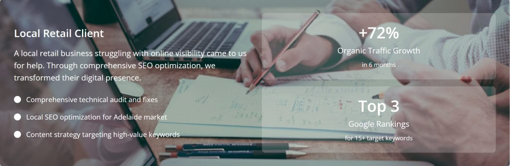 Let’s create a custom SEO strategy that drives sustainable growth for your Adelaide business.